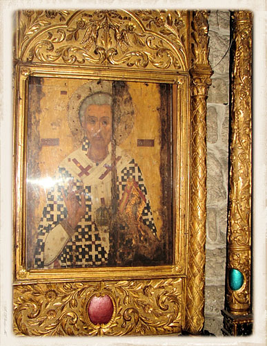 Но когда корабль, на борту которого находилась Богоматерь, подплывал к Китиону, разразился шторм, который унес его далеко, в Эгейское море, к берегам теперь уже святой Горы Афон (Греция). Здесь Дева Мария обращала язычников в христиан. Наконец, она доплыла до Китиона, где встретилась со Святым Лазарем, благословила городской храм и отбыла назад в Святую Землю.