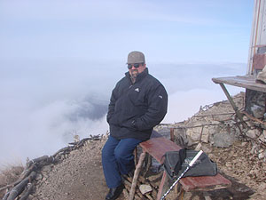 Середина февраля, но несмотря на зимние условия, решено совершить восхождение, благо есть свободный денёк. От родного города Ессентуки добираемся на автомобиле до юго- восточной окраины города Лермонтов. Здесь имеется возможность оставить автомобиль на территории охраняемой автостоянки, после чего отправляемся в пешеходную часть нашего путешествия. По прямой, асфальтированной дороге добираемся до начала лесного массива, немного левее высохшего русла ручья есть тропа, ведущая прямо на вершину . Температура воздуха чуть ниже нуля, низкая облачность, чувсвуется, что на гребешке, ведущем к вершине дует сильный ветер. Поднимаемся по тропе без особой торопливости, часто останавливаемся для отдыха. На седловине порывитый сильный восточный ветер, обмерзают брови, усы,очки покрыты белой опушкой, но тропа не скользкая, ветер сдул снег и подниматься несложно. Ближе к вершине начинает проглядывать солнце и вскоре мы оказываемся над облачным морем. Кавказский хребет, правда в дымке, но зрелище завораживающее: иногда в просветах между облаками видны районы Лермонтова, но чувство полёта над текущей облачной рекой остаётся. Спрятавшись от ветра на западной стороне вершины, пьём чай, любуемся окружающими красотами. Подъём от Лермонтова до вершины занял чуть более двух часов, спускаемся по пути подъёма и через полтора часа мы у автостоянки. Во время спуска, как только добрались до поперечной нашей тропе дороги, можно повернуть влево и через пару сотен метров слева можно видеть трубу, из которой изливается минеральная вода. Вода имеет запах сероводорода,но вкусна. Помимо пройденного нами маршрута,пользуются популярностью варианты подъёма от Железноводска, Пятигорска, Иноземцева и прогулки по кольцевой дороге вокруг Бештау. Нелишними в походе будут лыжные палки, ветровой костюм и подходящая обувка, хотя "было бы желание"...